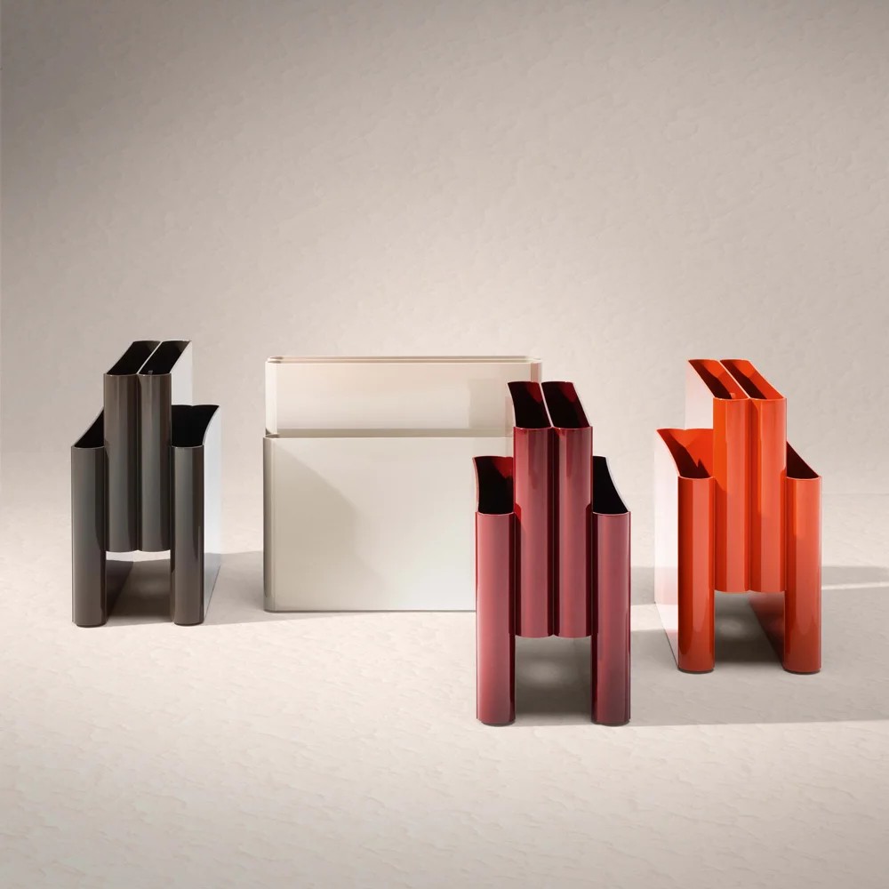 Το Magazine Rack σχεδιάστηκε από τον Giotto Stoppino το 1972 για την Kartell. Μία θήκη περιοδικών με 4 θέσεις για περιοδικά - βιβλία και κεντρική λαβή για εύκολη μετακίνηση. Το σχήμα είναι αναμφισβήτητα πρακτικό. Είναι ένα όμορφο αντικείμενο που μπορεί να τοποθετηθεί σε οποιοδήποτε περιβάλλον. Διαθέσιμο σε κεχριμπάρι, ανθρακί, κόκκινο Βουργουνδίας και γκρι-μπεζ χρώμα.