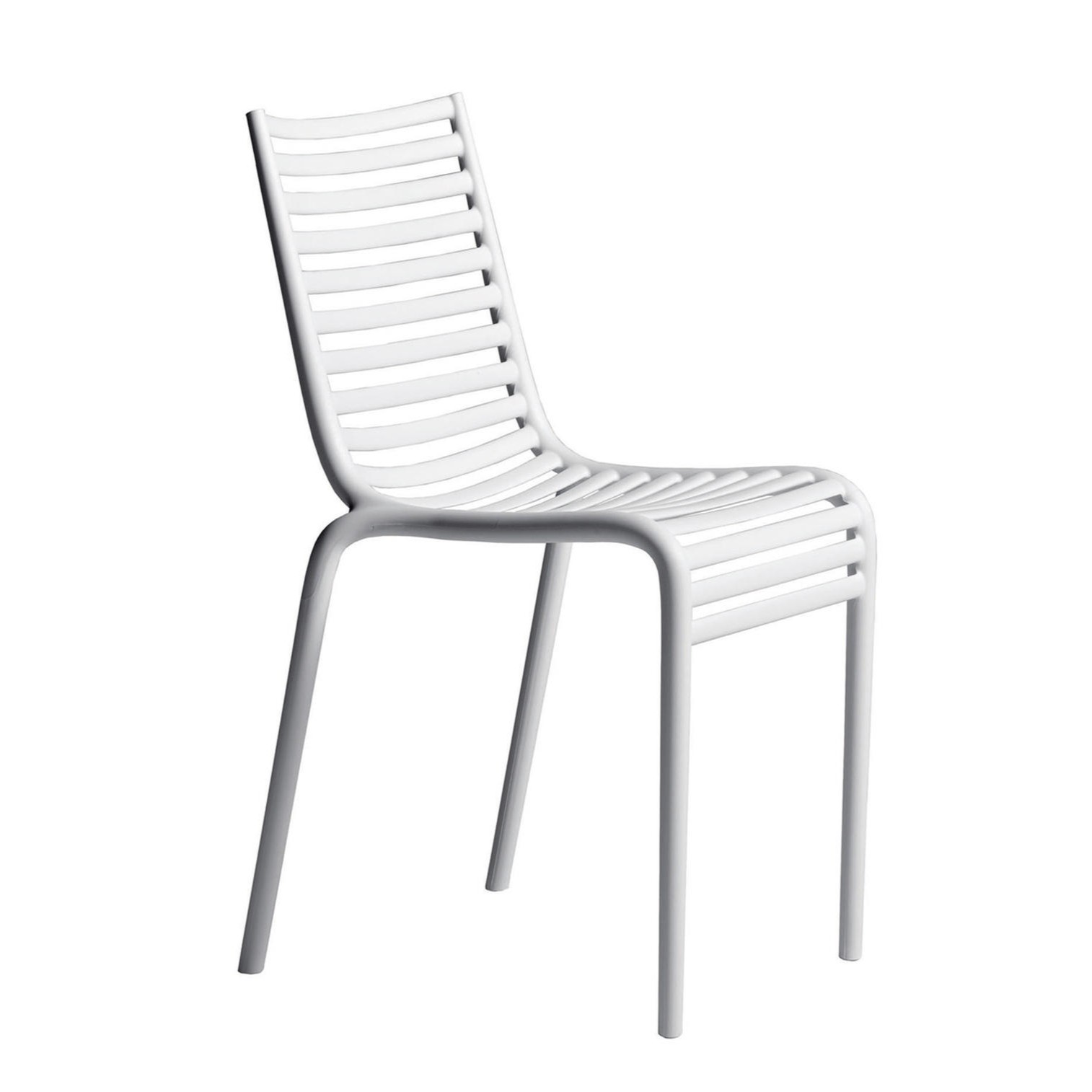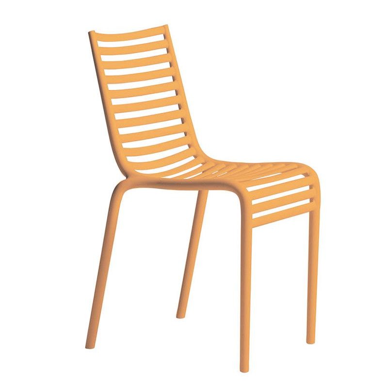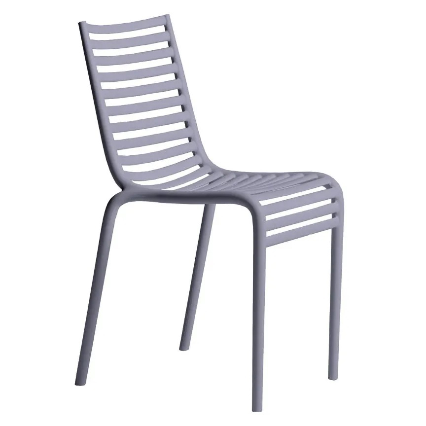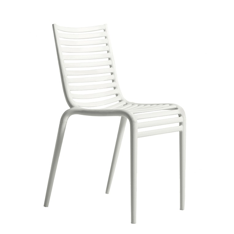 Even a classical image, as a railed chair, in the hands of Philippe Starck, acquires a particular connotation. The sequence of horizontal elements which creates the seat and the back definetly takes on a strong chiaroscuro and accompanies the bending of the knees. Pip-e is made of polypropylene monobloc and is availableble in white, dark grey, light grey, black, terracotta, light blue, green, beige and lavender.