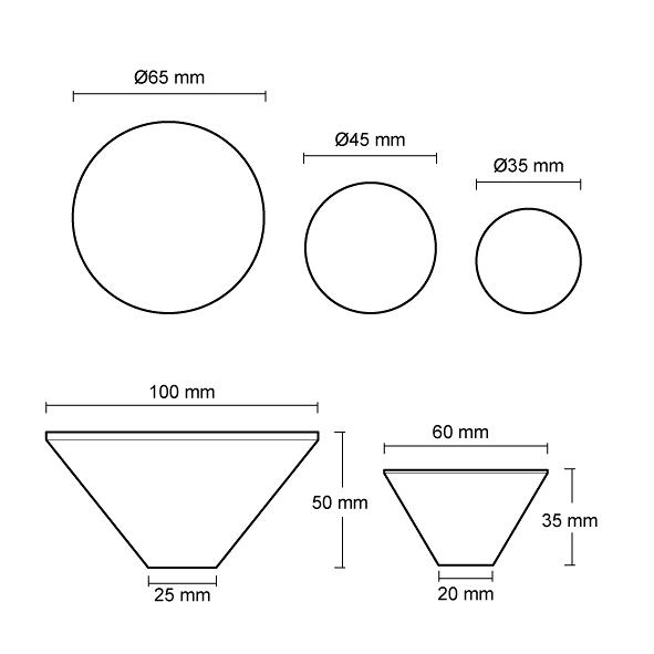 Διαστάσεις: μικρό Φ 6cm – μεγάλο Φ 10cm