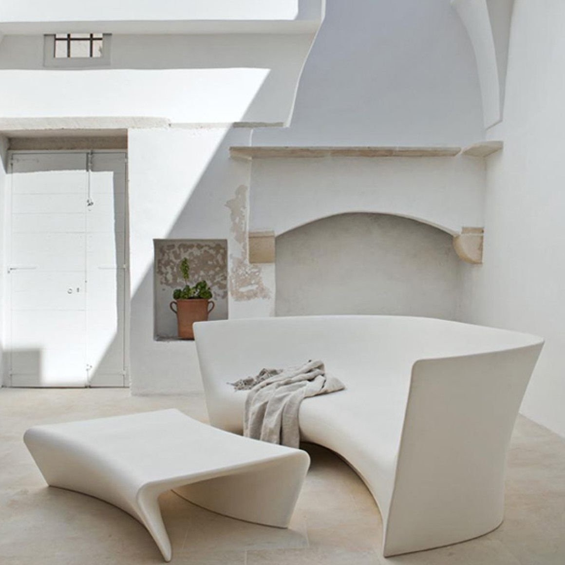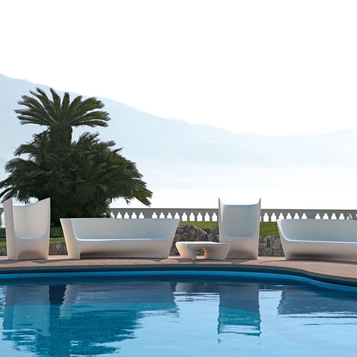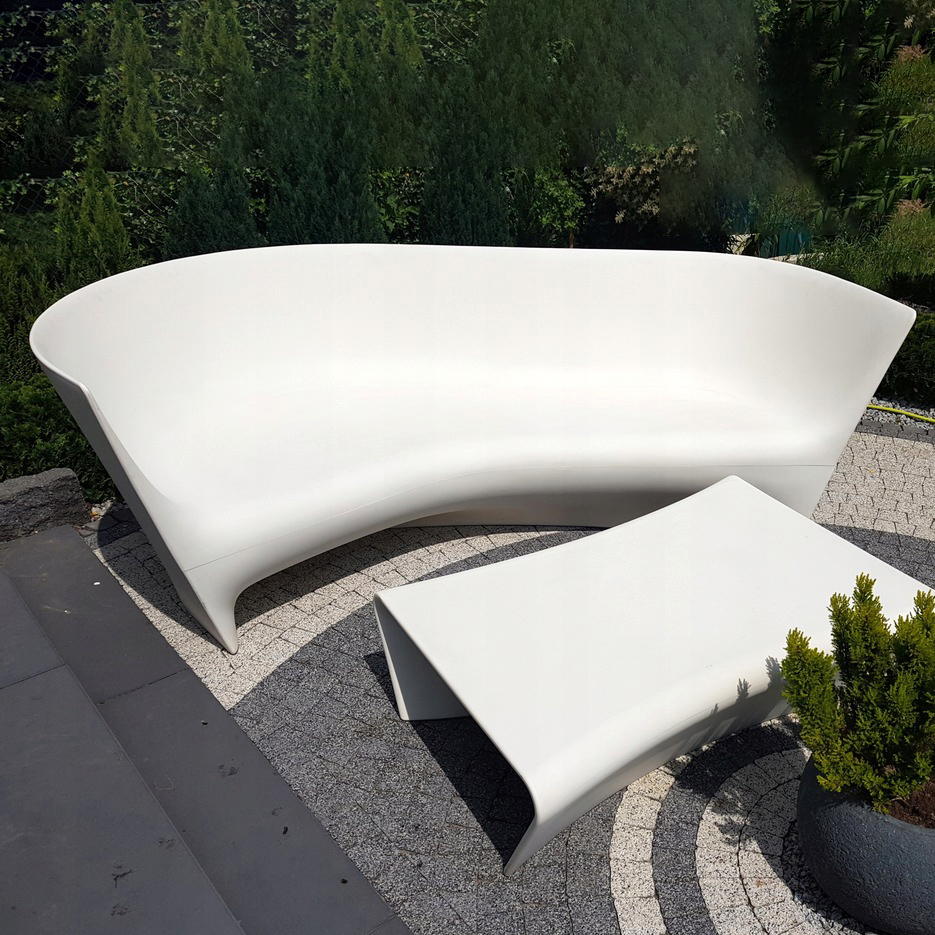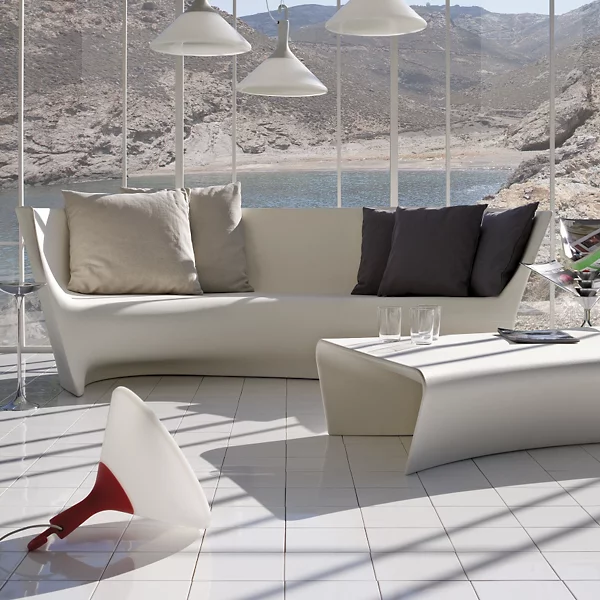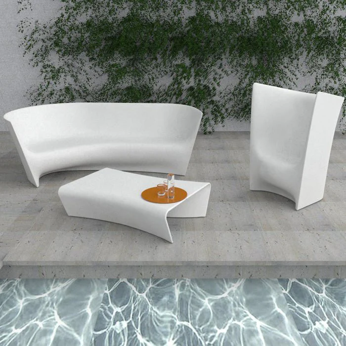 Τραπεζάκι σαλονιού που ολοκληρώνει την οικογένεια που αποτελείται από τον καναπέ Grand Plié και την πολυθρόνα Plié για ένα αρμονικό αλλά εξαιρετικά κομψό σύνολο. Χαρακτηριζόμενο από το γλυπτό του σχήμα, το αρχικό τραπέζι θυμίζει ένα φύλλο χαρτιού διαμορφωμένο σε λεπτές πτυχές εσοχών και εσοχών. Το Piaffe είναι κατάλληλο για χρήση τόσο σε εσωτερικούς, όσο και σε εξωτερικούς χώρους.