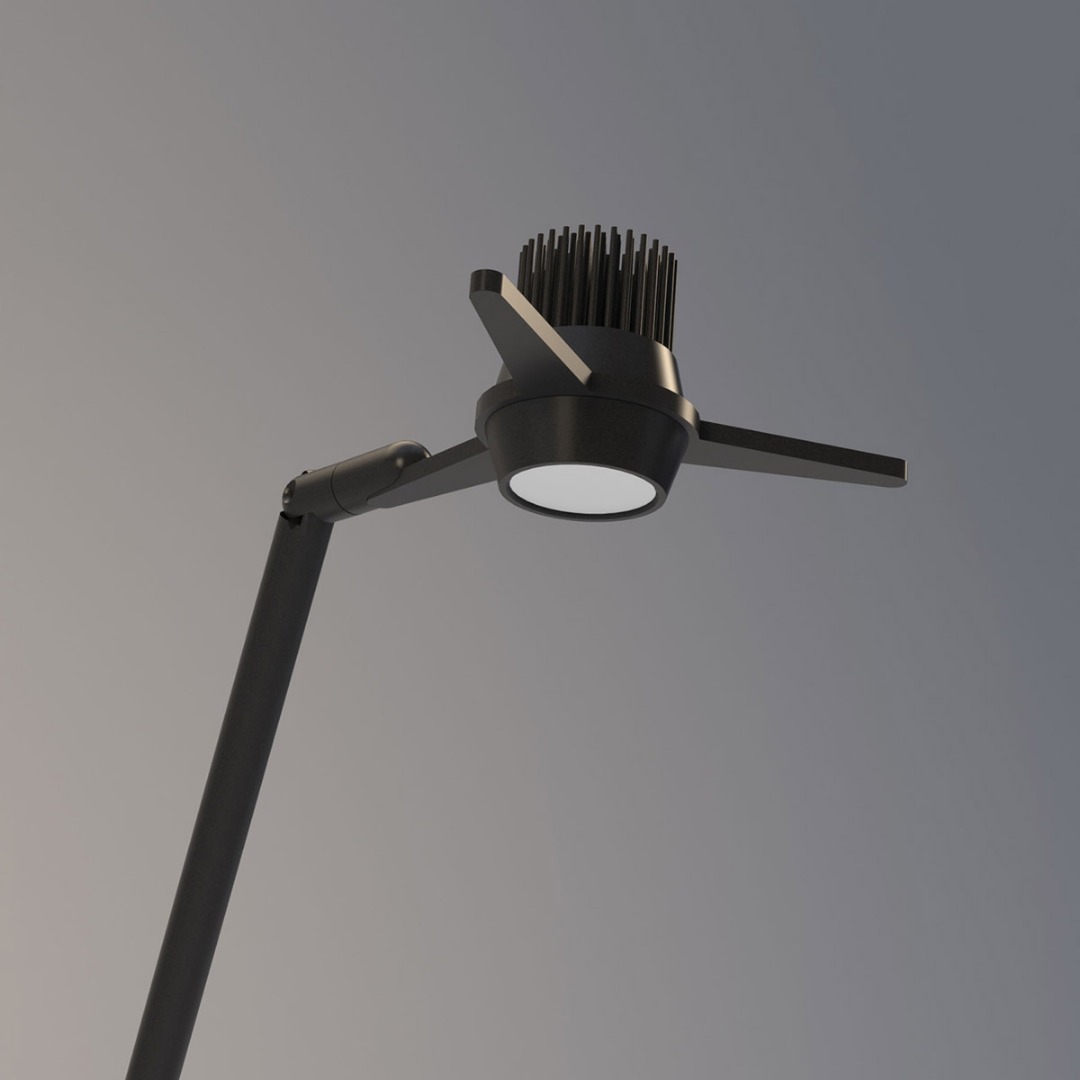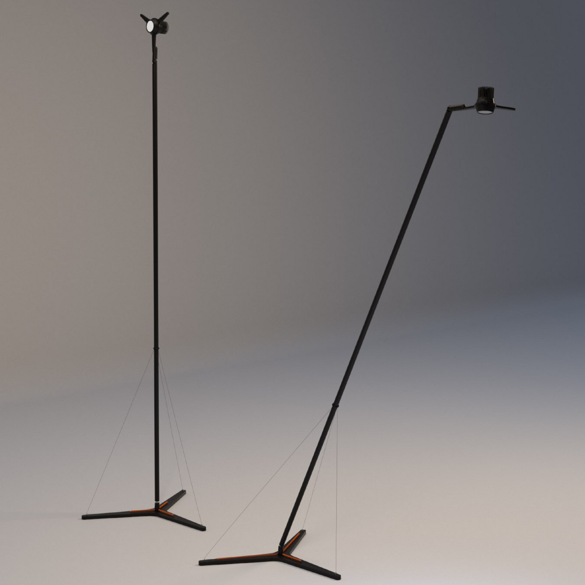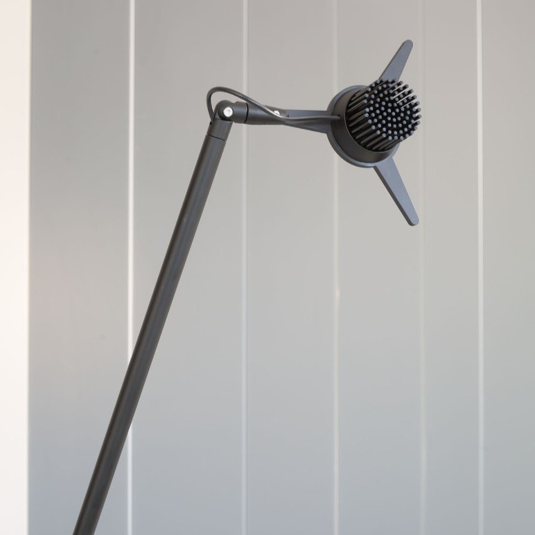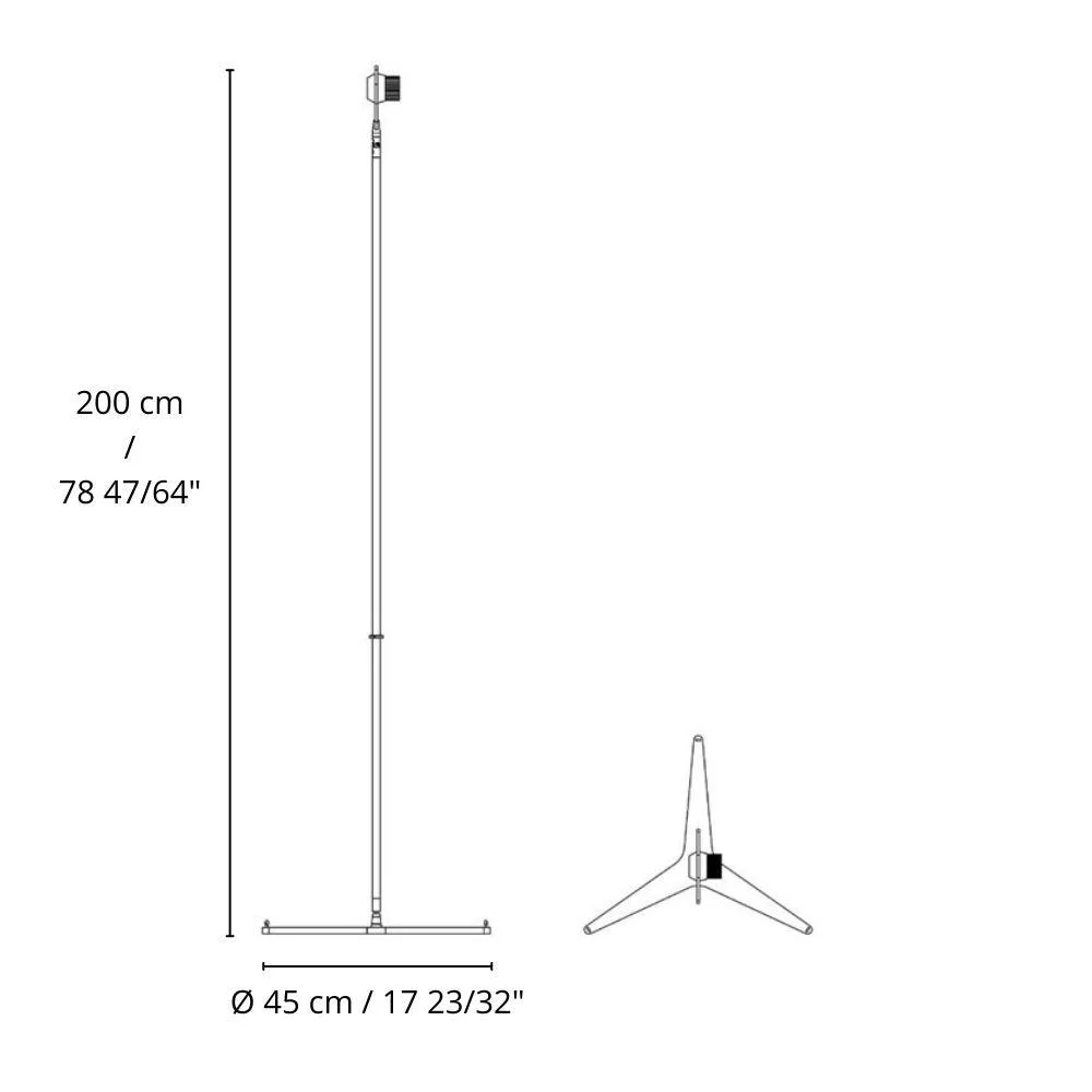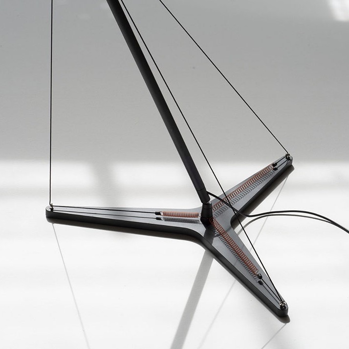 Y3 επιδαπέδιο φωτιστικό σχεδιασμένο από τον Simon Schmitz. Ένα δυναμικό φωτιστικό δαπέδου με άμεσο/έμμεσο φως. Χάρη στα τρία συρματόσχοινα που είναι στερεωμένα στο σώμα του φωτιστικού και συνδέονται με τα τρία ελατήρια που υπάρχουν στην τριγωνική βάση, το φωτιστικό μπορεί να παίρνει κλίση προς οποιαδήποτε κατεύθυνση, παραμένοντας πάντα τέλεια ισορροπημένη. Ο περιστρεφόμενος ανακλαστήρας φωτεινής πηγής Led από αλουμίνιο, με περιστρεφόμενο σύνδεσμο επιτρέπει την κατεύθυνση του φωτός σε οποιαδήποτε θέση. Διαθέσιμο με ροοστάτη στο καλώδιο. Η βάση είναι κατασκευασμένη από σίδηρο και το σώμα του φωτιστικό από αλουμίνιο, βαμμένα σε μαύρο ματ χρώμα.