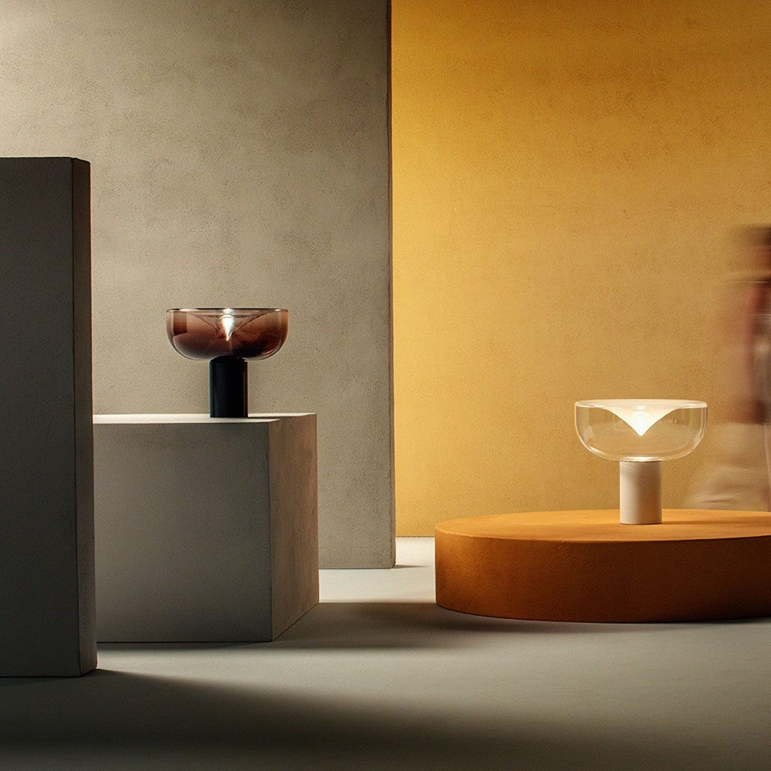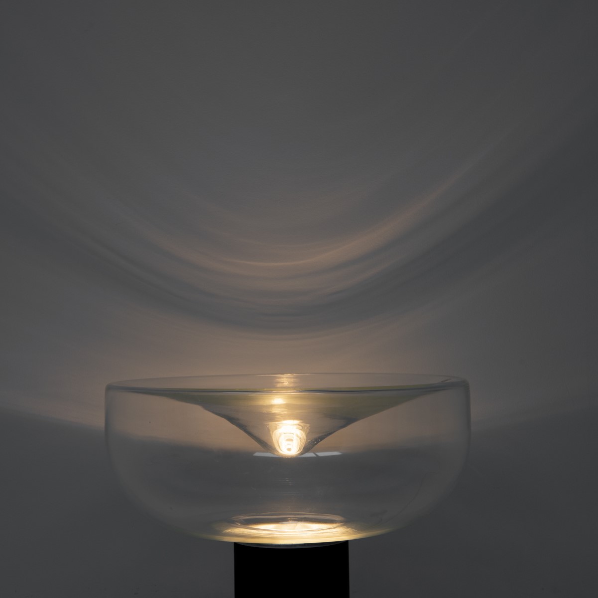 Το επιτραπέζιο φωτιστικό Aella 54 είναι η «δίνη», που ενσαρκώνεται από τη δυναμική κίνηση που αποτυπώνεται στο χειροποίητο γυάλινο διαχύτη. Προερχόμενος από το μεμονωμένο σημείο, ένας παροδικός κώνος φωτός αναπτύσσεται για να δημιουργήσει ελικοειδή μοτίβα και αρμονικές αντανακλάσεις.