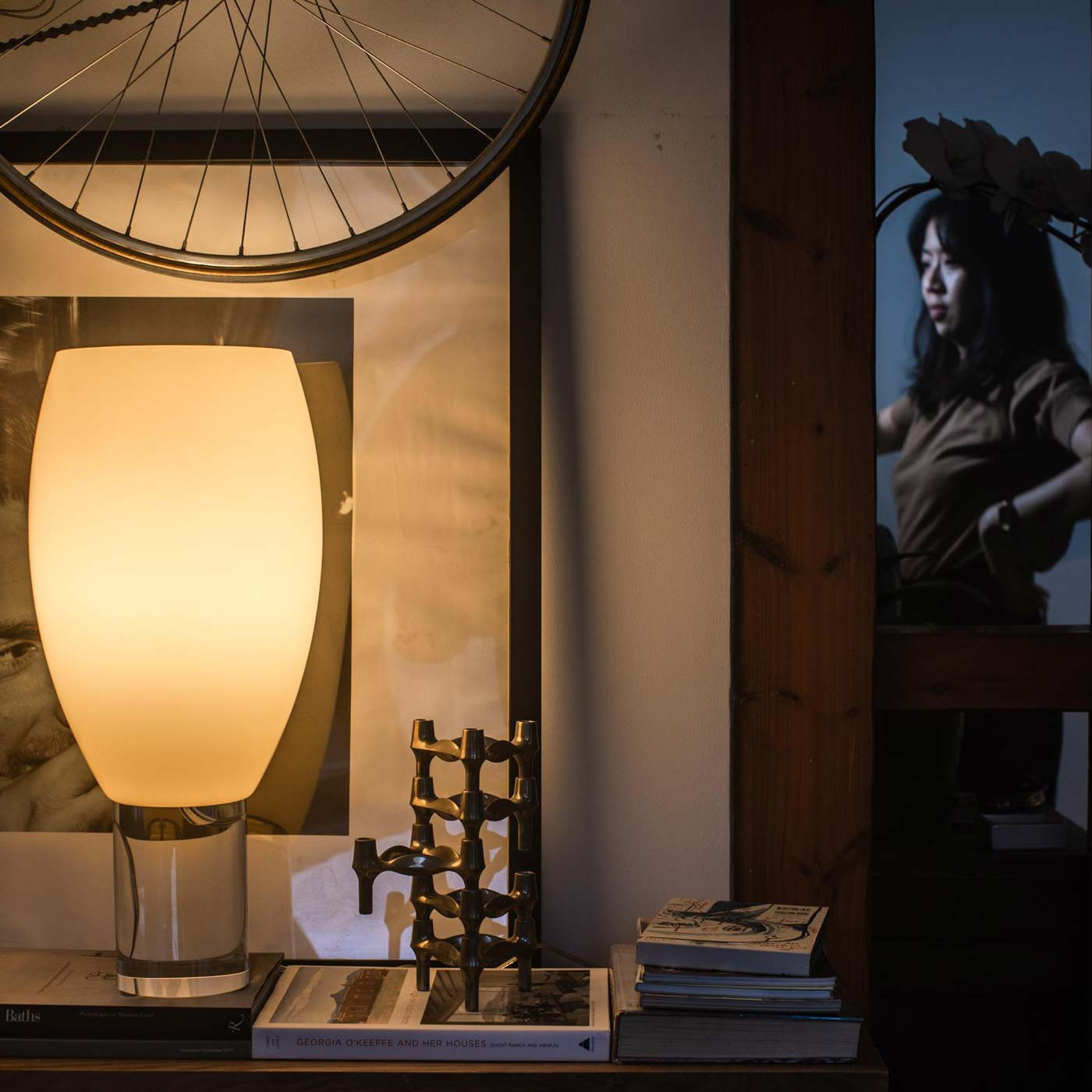 Ο Rodolfo Dordoni επανασχεδίασε τη σειρά Buds, δίνοντας μία σύγχρονη γεύση, με νέα χρώματα. Βασικό στοιχείο του σχεδιασμού παραμένει το φυσητό γυαλί, με μια χειροποίητη διαδικασία πέντε στρωμάτων, η οποία είναι εμφανής στην περικοπή του διαχύτη. Η βάση του φωτιστικού είναι από διάφανο συμπαγές PMMA.
