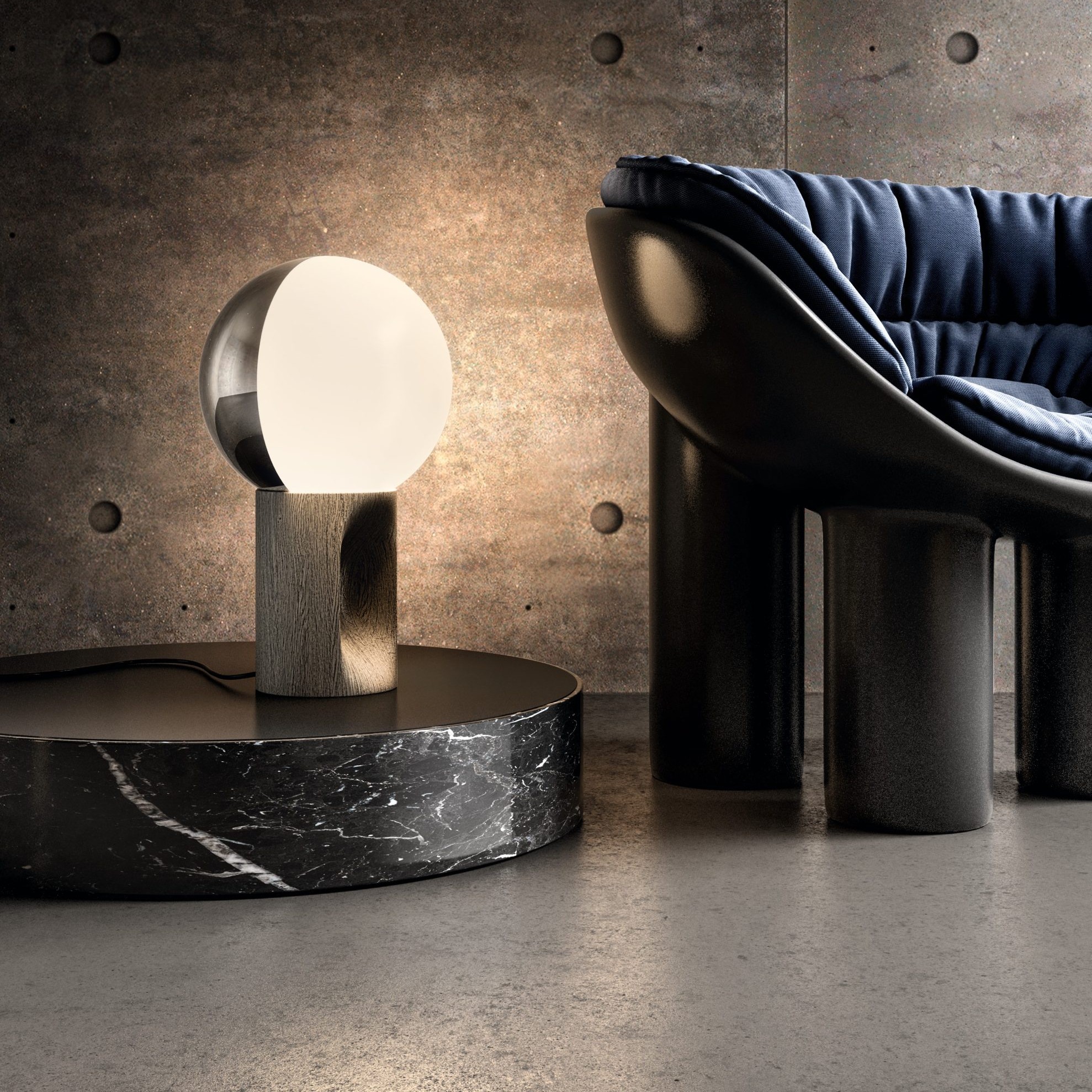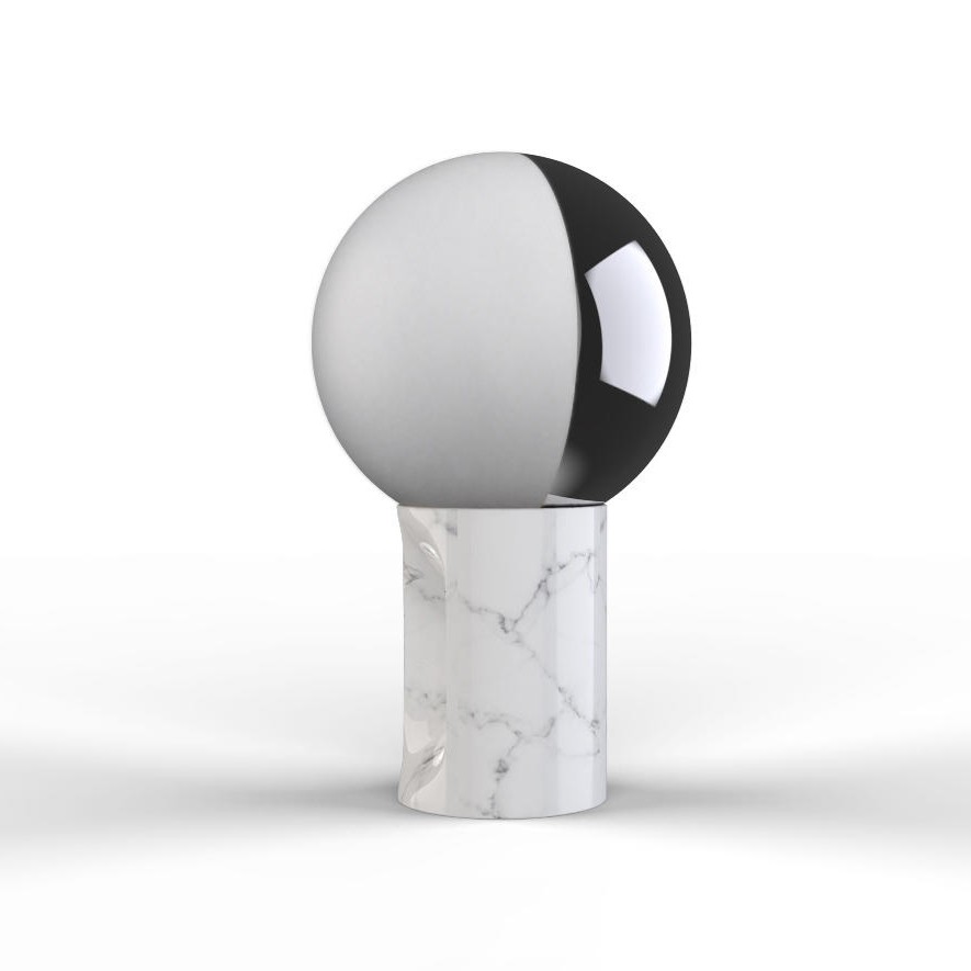 Το Je Suis είναι ένα εκκεντρικό επιτραπέζιο φωτιστικό σχεδιασμένο από τον Carlo Colombo. Ένα γλυπτό φωτιστικό που σχηματίζεται από μια δίχρωμη σφαίρα σε λευκό και ασημί γυαλί και από μια μνημειακή βάση από μάρμαρο Carrara ή ξύλο. Το Je suis είναι μια δήλωση προθέσεων, με τα πλούσια φινιρίσματα και την ομορφιά πέρα ​​από τη λειτουργικότητα.
