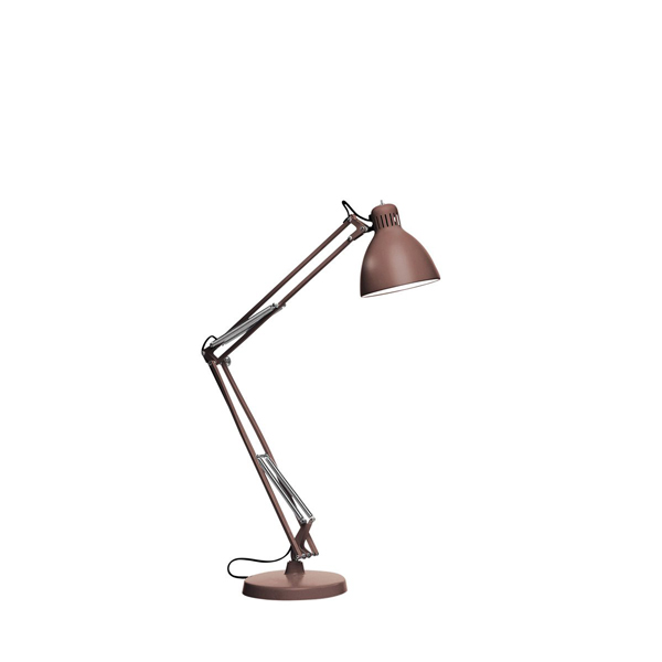 Επιτραπέζιο φωτιστικό JJ Small σχεδιασμένο από τον Jac Jacobsen. Ματ λακαρισμένο ατσάλι με διαχύτη αλουμινίου. Οι βραχίονες και ο διαχύτης κινούνται. Το εσωτερικό του διαχύτη είναι σε λευκή λάκα. Διατίθεται σε λευκό, μαύρο, κόκκινο, μπλε, γκρι σαμπλέ και καφέ της σκουριάς.
