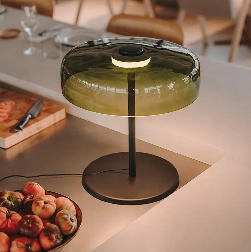 Το επιτραπέζιο φωτιστικό Levels 1 υπερηφανεύεται για ένα έμφυτο χάρισμα, όχι μόνο για τη λεπτότητα των σχημάτων του, αλλά και για τη ζεστασιά του φωτός του και την ισορροπία που εκπέμπει, γαλήνια και αδιατάρακτη. Το φωτιστικό αποτελείται από ένα γυάλινο στοιχείο (φυσητό χειροποίητο γυαλί), διαμέτρου 42cm και μεταλλική δομή σε μαύρο χρώμα. Διαθέσιμο σε πράσινο, γκρι φουμέ ή στο χρώμα του κεχριμπαριού.