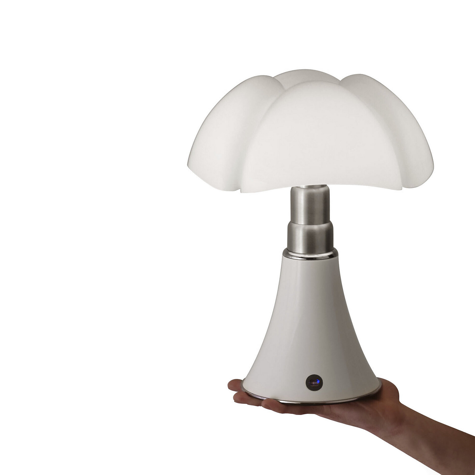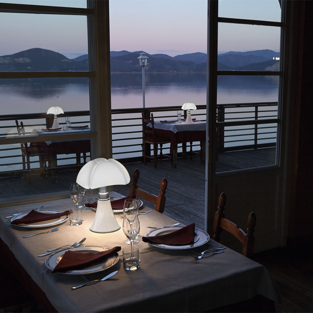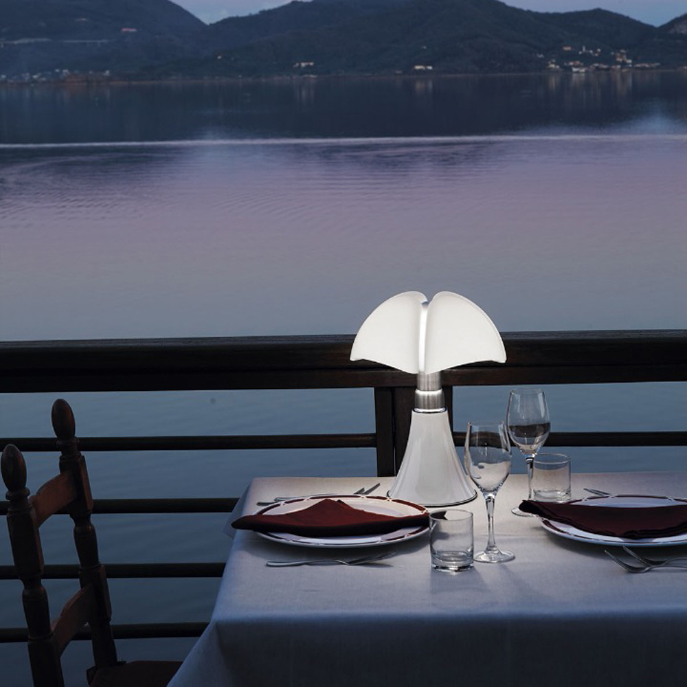 Χάρη στην τεχνολογία Led, το Minipipistrello είναι πλέον διαθέσιμο σε φορητή έκδοση με επαναφορτιζόμενη μπαταρία και ροοστάτη με αισθητήρα αφής. Το Minipipistrello είναι έτοιμο να πάει όπου θέλετε, σε ένα ρομαντικό δείπνο, στο γραφείο, στο υπνοδωμάτιο, ως ιδανικός σύντροφος.