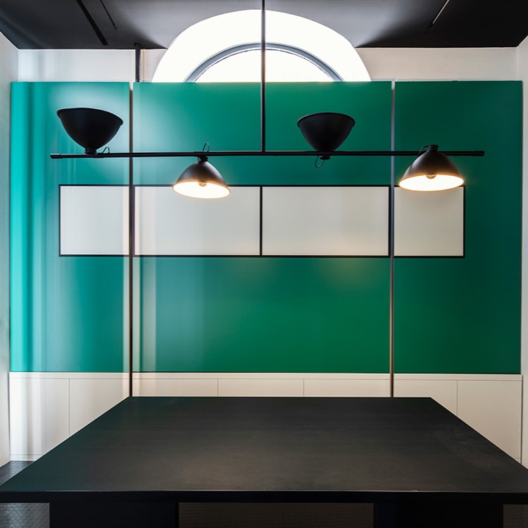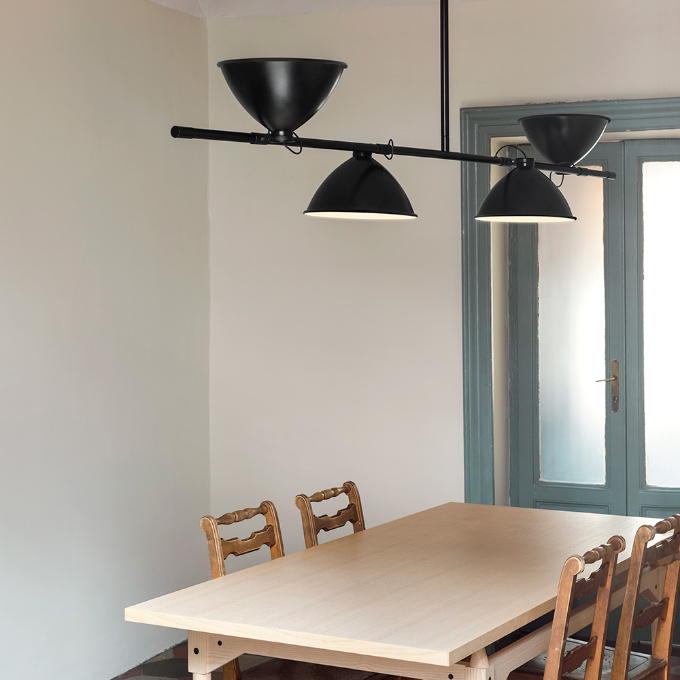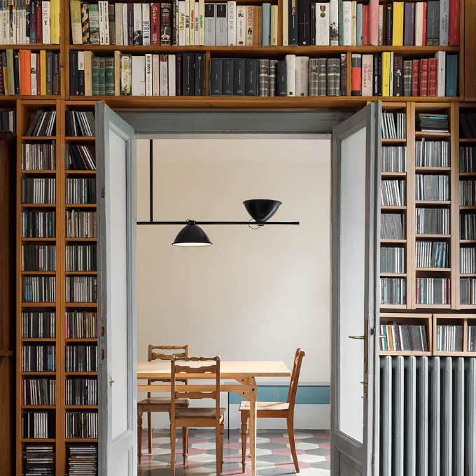 Για το Casa de Vidro, ένα συμβολικό έργο της βραζιλιάνικης μοντερνιστικής αρχιτεκτονικής, η Lina Bo Bardi σχεδίασε το 1950 το LBB01, ένα εμβληματικό φωτιστικό. Ένα ουσιαστικό και γεωμετρικό σχέδιο στο οποίο οι γραμμές και οι όγκοι αγγίζουν και τέμνονται, σε απόλυτη συνέχεια με το σχεδιαστικό στυλ του σπιτιού στο São Paulo. Το τηλεσκοπικό στέλεχος (minimum ύψος 90cm/maxiumum ύψος 154cm) και οι ρυθμιζόμενοι διαχύτης 360° σε μαύρο βαμμένο αλουμίνιο επιτρέπουν άμεσο και έμμεσο φωτισμό, ενώ το εσωτερικό φινίρισμα είναι λευκό ματ.