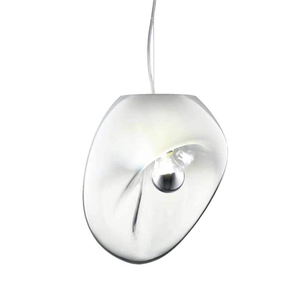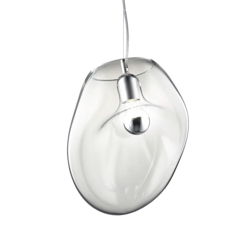 Διαθέσιμο σε διάφανο, σατινέ, λευκό, ρόζ ή κόκκινο Βουργουνδίας. Τα μεταλλικά στοιχεία του φωτιστικού είναι ματ χρώμιο.