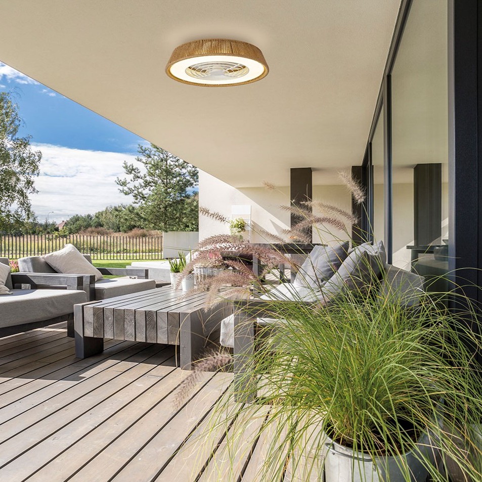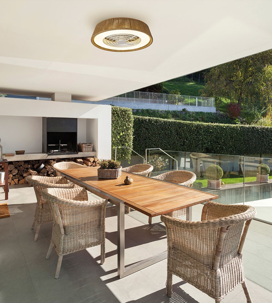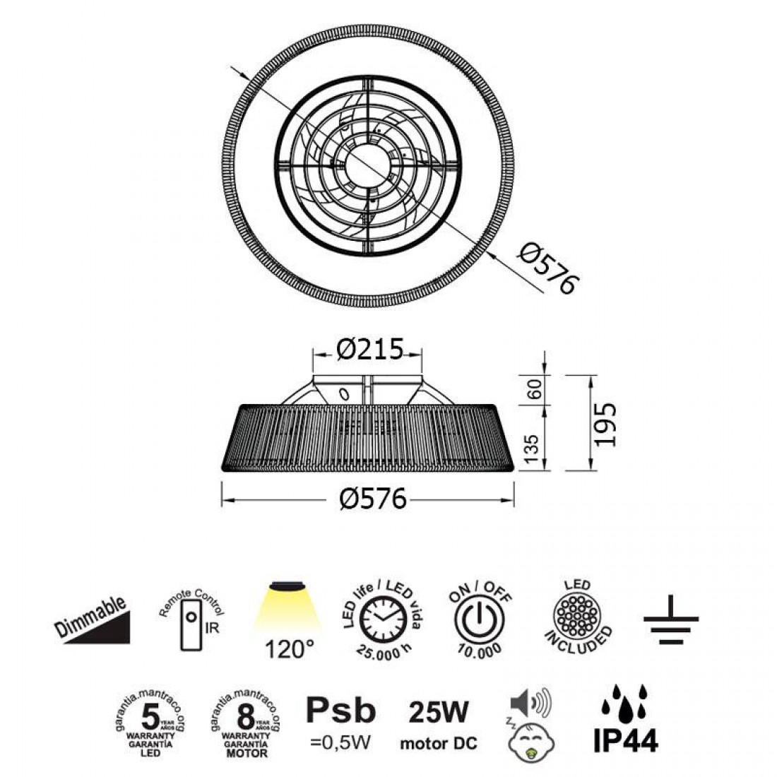 Polinesia Natural ανεμιστήρας οροφής που συνδυάζει με επιτυχία την απόδοση, τη δύναμη και τη σχεδίαση. Διαχύτης από ακρυλικό και δομή καλυμμένη με φιλικό προς το περιβάλλον φυσικό σχοινί.