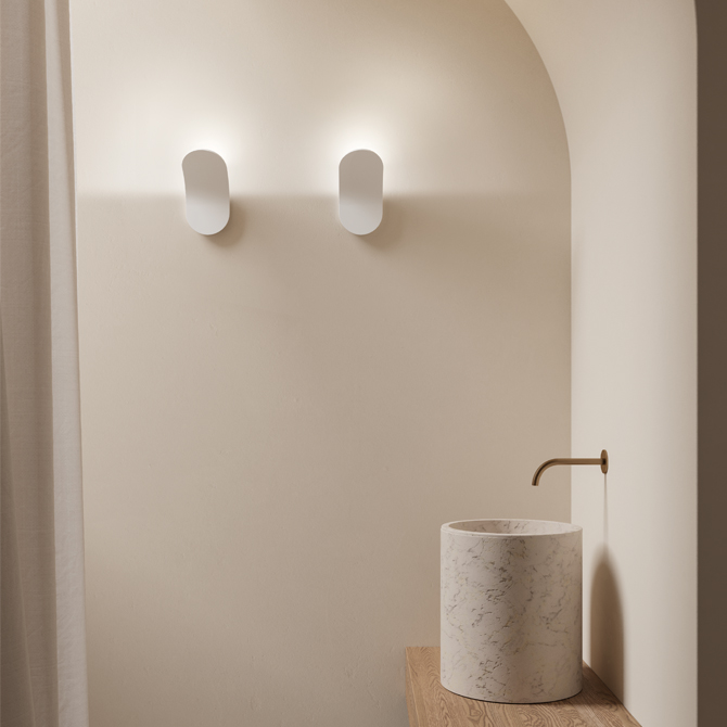Lik φωτιστικό τοίχου έμμεσου φωτισμού σχεδιασμένο από τους S&R Cornelissen. Το φωτιστικό είναι κατασκευασμένο από αλουμίνιο και διατίθεται σε λευκό ματ.