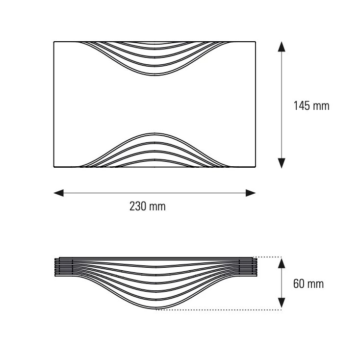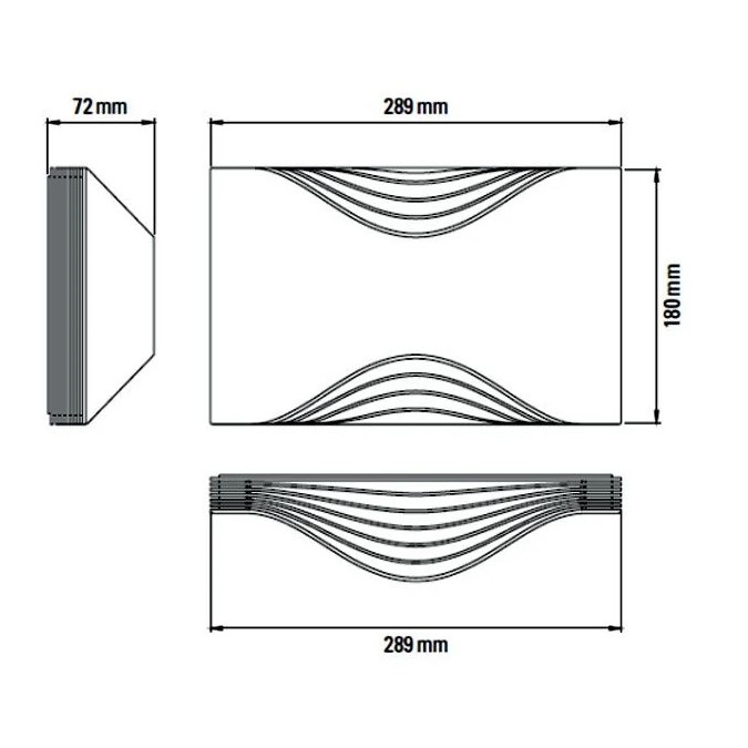 Respiro Large M 28.9cm x Y 18cm x B 7.2cm. Περιλαμβάνει πηγή Led 14W 2700K (θερμό φως) 1400lm dimmable TRIAC.