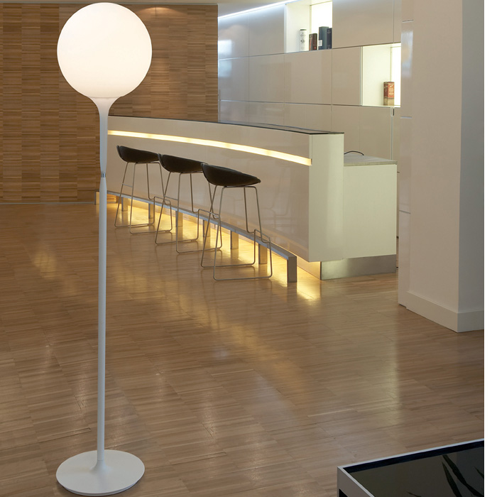 Επιδαπέδιο φωτιστικό σχεδιασμένο από τον Michele De Lucchi σε συνεργασία με τον Huub Ubbens. Μία απλή και κομψή φόρμα κατάλληλη για κάθε χώρο. Το φως διαχέεται μέσα από το φυσητό γυαλί οπαλίνας.
