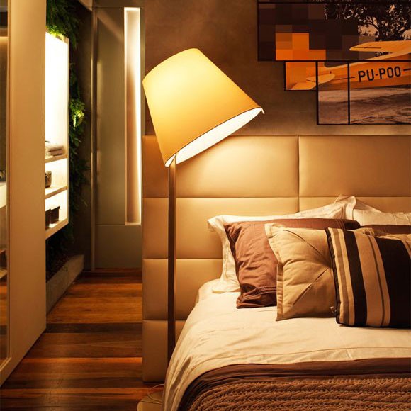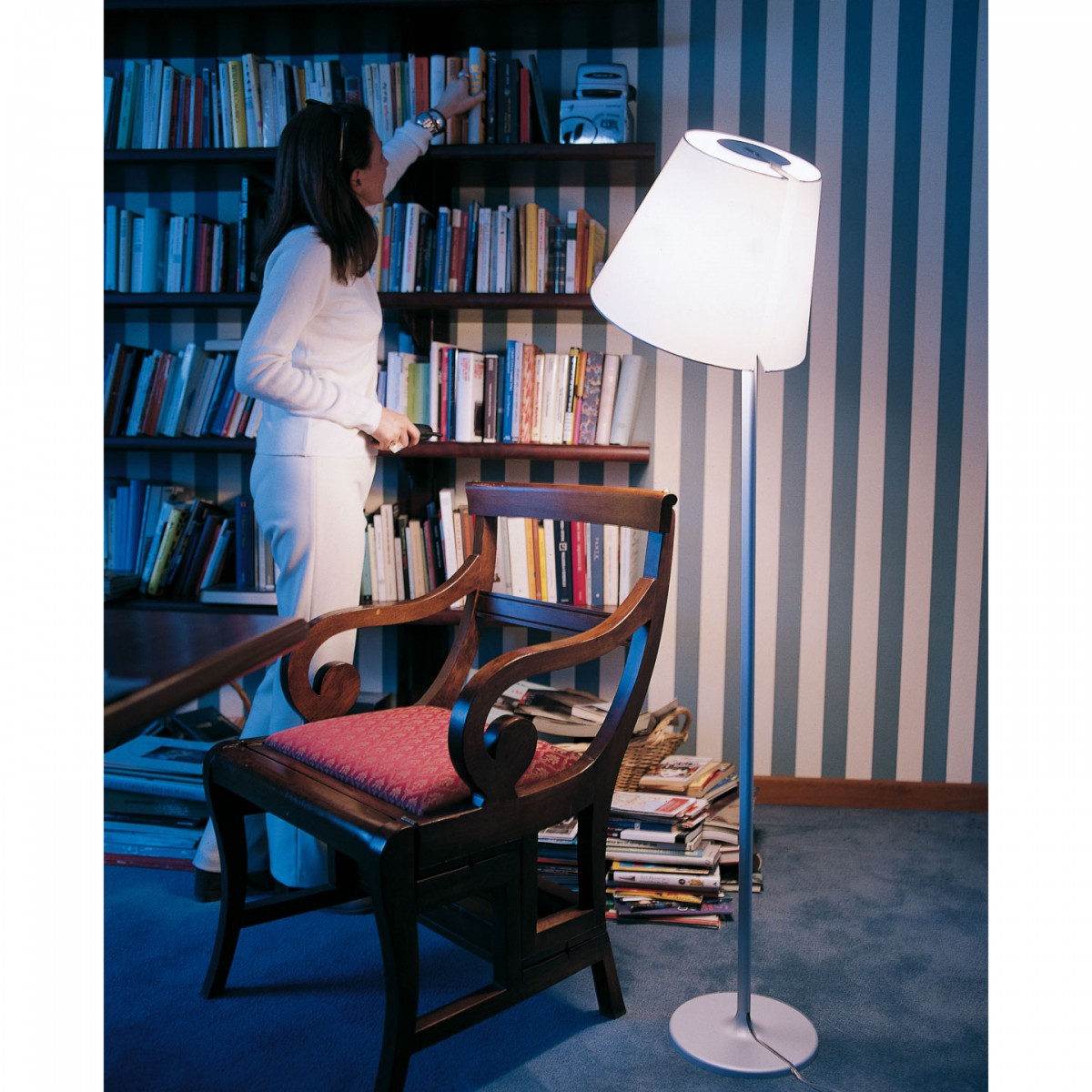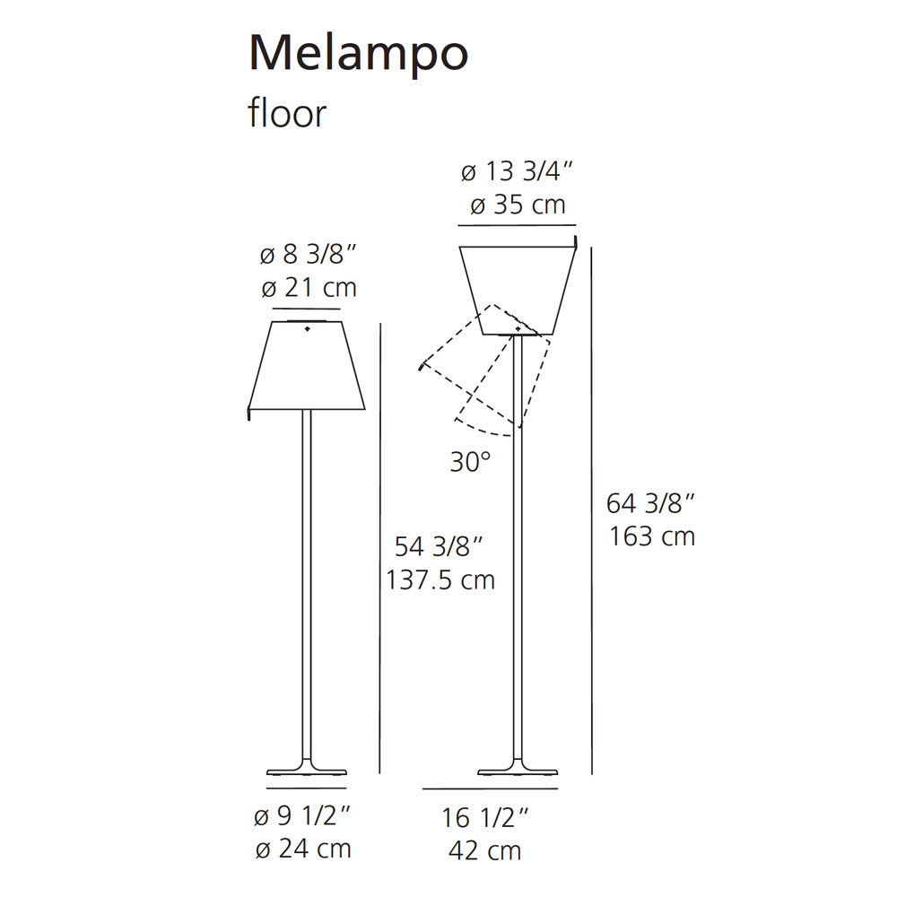 Το φωτιστικό δαπέδου Melampo δεν είναι κλασικό και άκαμπτο με την παραδοσιακή έννοια, είναι προσαρμόσιμο και ευέλικτο.Το καπέλο του μπορεί να ρυθμιστεί σε τρεις θέσεις, ανάλογα με την προτίμησή και την ανάγκη σας μπορείτε να κατευθύνετε το φως στο σημείο που θέλετε. Διατίθεται γκρι ασημί ή μπρονζέ.