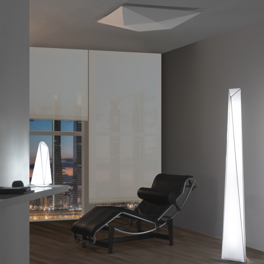 Το σχήμα του φωτιστικού δαπέδου Polaris Longo θυμίζει γλυπτό. Αποτελείται από μία μεταλλική δομή επάνω στην οποία εφαρμόζει ένα ελαστικό ύφασμα σε λευκό χρώμα. Φωτίζεται σε όλο το μήκος του με έναν λαμπτήρα φθορισμού Τ5 35W - με ηλεκτρονικούς εναυστήρες, χωρίς ροοστάτη. Το ύφασμα μπορεί να αφαιρεθεί και να πλυθεί.