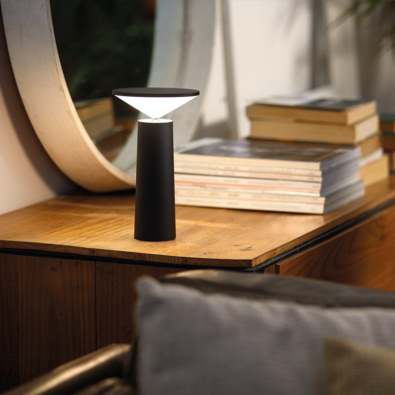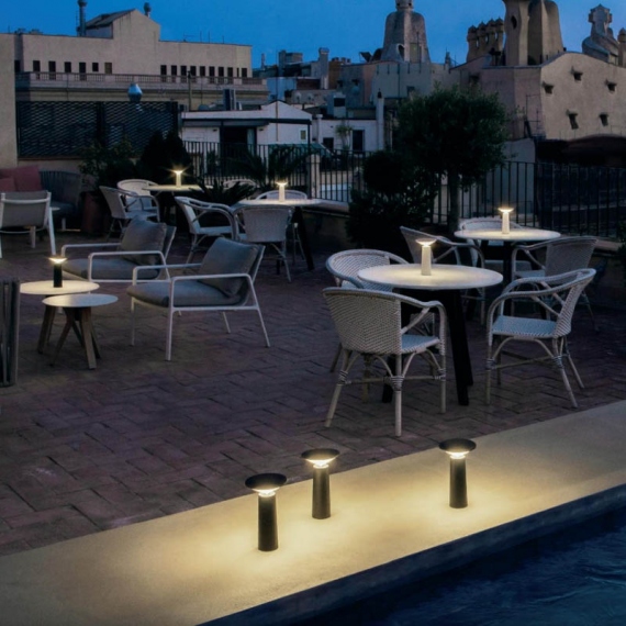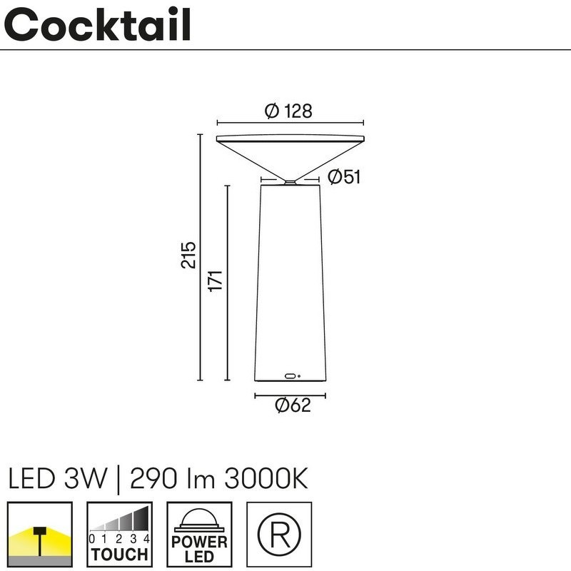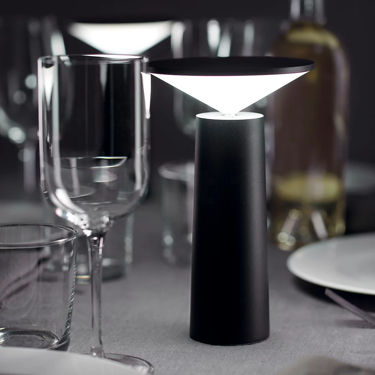 Cocktail επιτραπέζιο, φορητό, επαναφορτιζόμενο φωτιστικό, σχεδιασμένο από τον Francesc Vilaró. Πρόκειται για ένα καινοτόμο φωτιστικό με υψηλή αισθητική. Δημιουργικότητα και εκβιομηχάνιση. Ένα φορητό φωτιστικό που λειτουργεί για εσάς, δημιουργώντας τέλεια ατμόσφαιρα σε εστιατόρια, ξενοδοχεία, βεράντες και σπίτια. Δομή από αλουμίνιο βαμμένο σε λευκό, μαύρο ή πράσινο χρώμα, διαχύτης από σατινέ πολυανθρακικό υλικό.