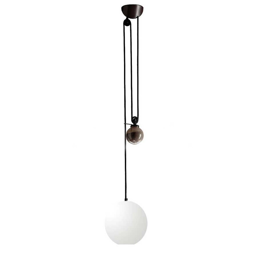 Το Aggregato Saliscendi Sphere σχεδιάστηκε από τον Enzo Mari & τον Giancarlo Fassina το 1976. Είναι το αποτέλεσμα των σκέψεων των δύο δημιουργών σχετικά με τις λογικές της βιομηχανικής παραγωγής: μια ''χούφτα'' βασικά στοιχεία καθιστούν δυνατή τη σύνθεση πολλαπλών λύσεων φωτός. Το φωτιστικό αποτελείται από μία ελλειπτική βάση από τεχνοπολυμερές υλικό, υφασμάτινο καλώδιο, μία διάφανη σφαίρα από πλαστικό γεμισμένη με σκάγια - που λειτουργεί ως αντίβαρο (με μία πολύ απλή κίνηση αυξομειώνεται το ύψος του φωτιστικού). Ο σφαιρικός διαχύτης είναι διαθέσιμος σε λευκό μεθακρυλικό υλικό. Ο διαχύτης είναι διαθέσιμος σε δύο διαμέτρους: Φ 25cm ή Φ 40cm.