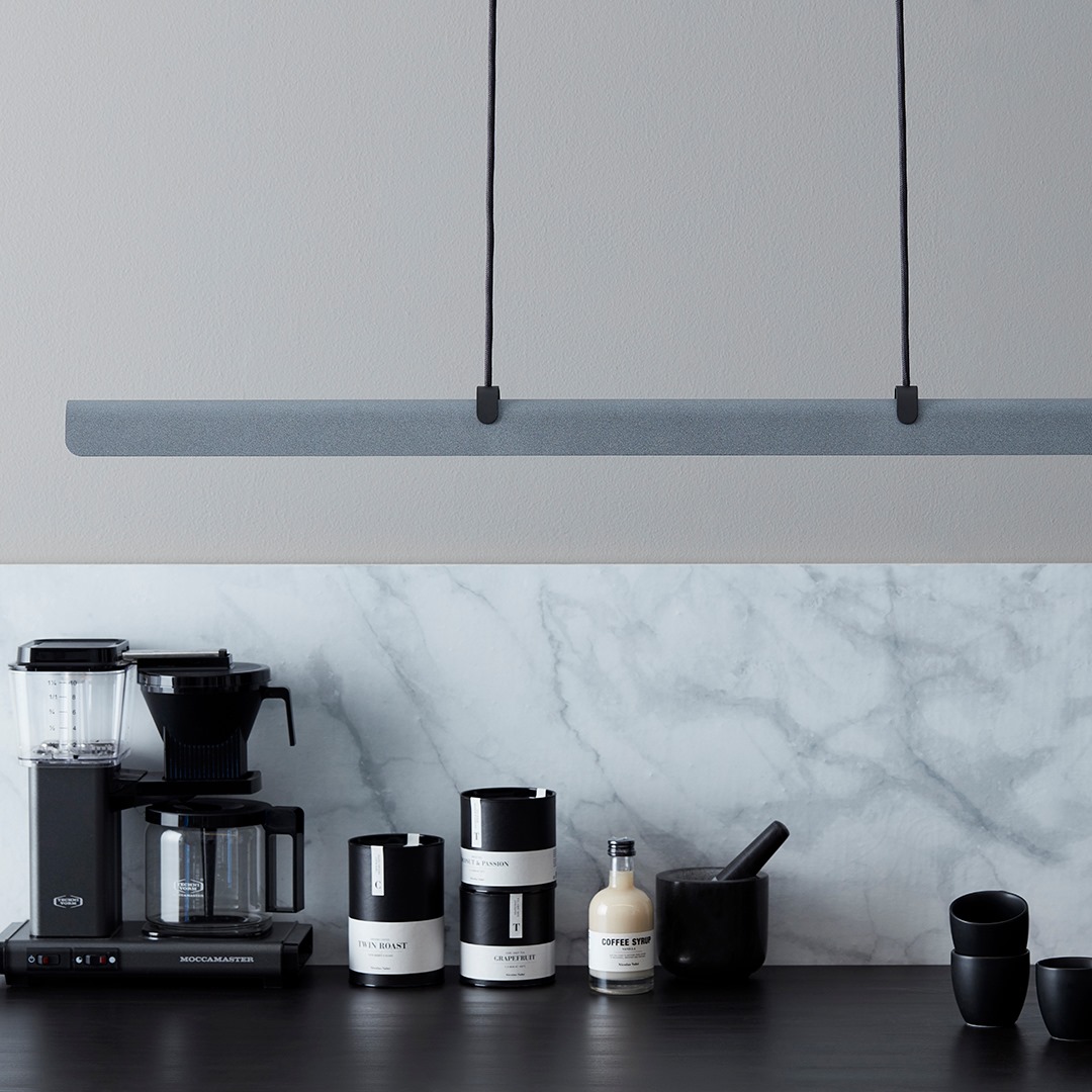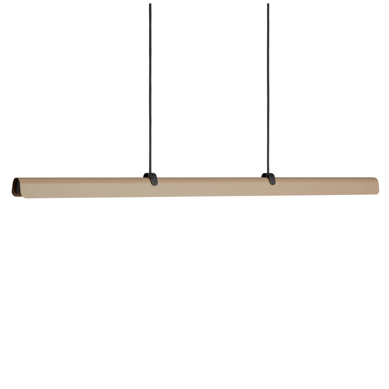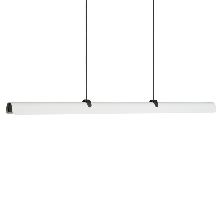 Γραμμικό κρεμαστό φωτιστικό Fold από μέταλλο βαμμένο σε τέσσερις επιλογές: λευκό, μαύρο, στο χρώμα της άμμου ή στο γκρι του τσιμέντου. Το φωτιστικό δίνει άμεσο φωτισμό και μπορεί να φωτίσει εξίσου επαγγελματικούς ή οικιακούς χώρους.