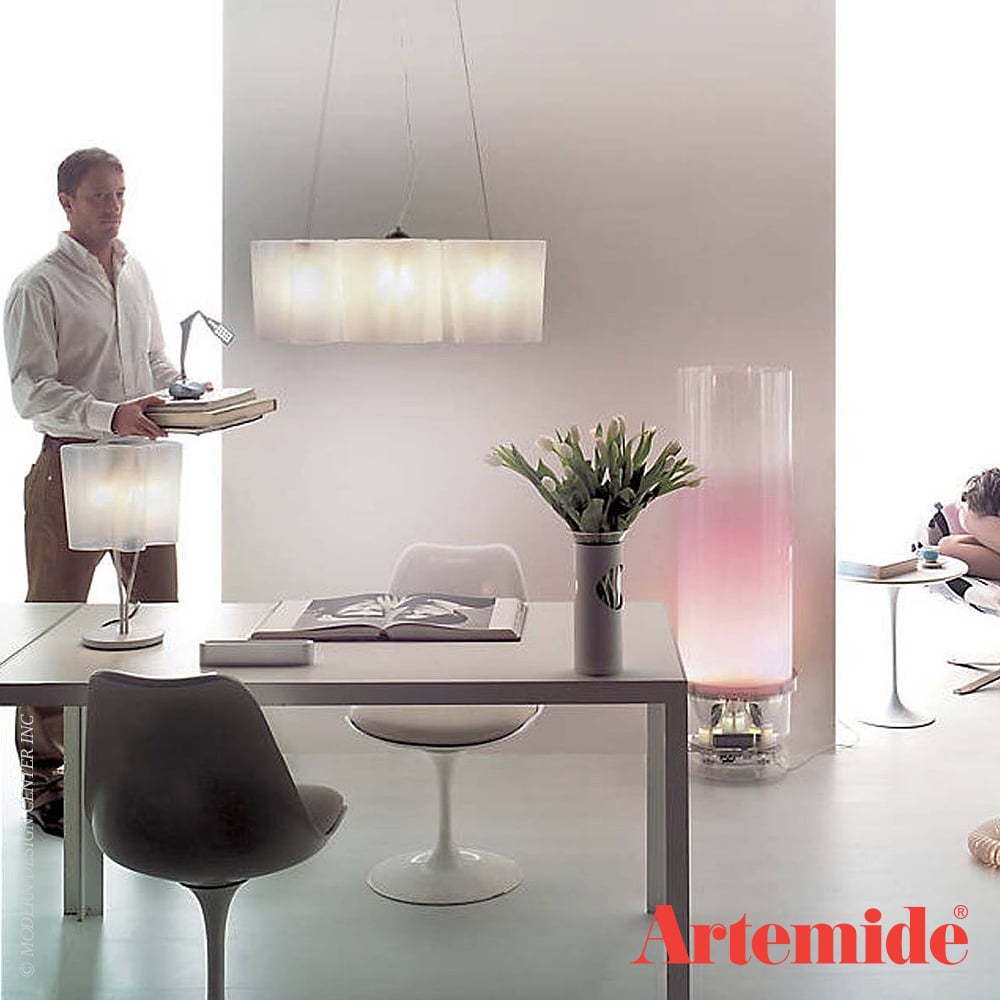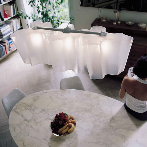 Το φωτιστικό Logico σχεδιάστηκε από τον Michele De Lucchi και τον Gerhard Reichert. Αποτελείται από μία μεταλλική βάση βαμμένη σε ανοιχτό γκρι χρώμα και τρεις διαχύτες από φυσητό γυαλί με γυαλιστερό σαν μετάξι φινίρισμα. Το γυαλί αποτελείται από τρία στρώματα - κρύσταλλο, μετάξι και πάλι κρύσταλλο, που συνολικά δίνουν μία αίσθηση πολυτέλειας, ιδανική για κάθε χώρο.