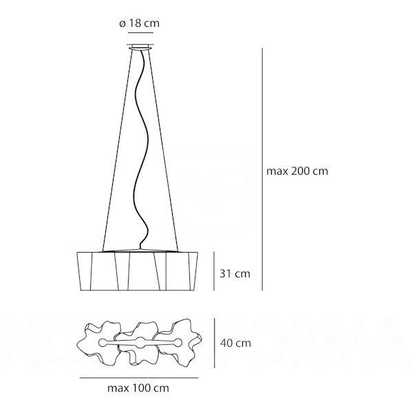 Large: L 100cm W 40cm H 31cm max 3 x 105W (E27) αλογόνου ή 3 x 15W (E27) Led λαμπτήρες.