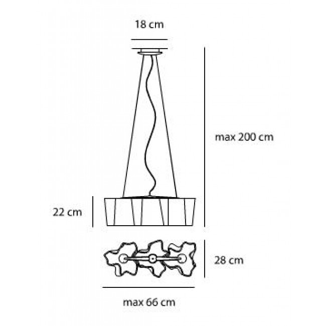 Mini: L 66cm W 28cm H 22cm max 3 x 70W (E27) αλογόνου ή 3 x 10W (E27) Led λαμπτήρες