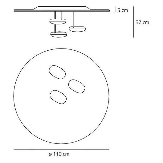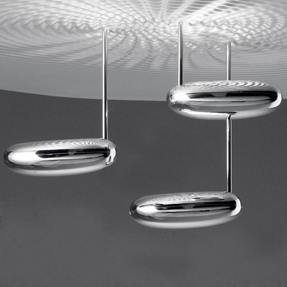 Το φωτιστικό οροφής Droplet θυμίζει επιφάνεια νερού πάνω στην οποία αντανακλώνται τρία ελαφριά βότσαλα. Η βάση του φωτιστικού είναι από χυτό αλουμίνιο, το ίδιο και οι ανακλαστήρες.